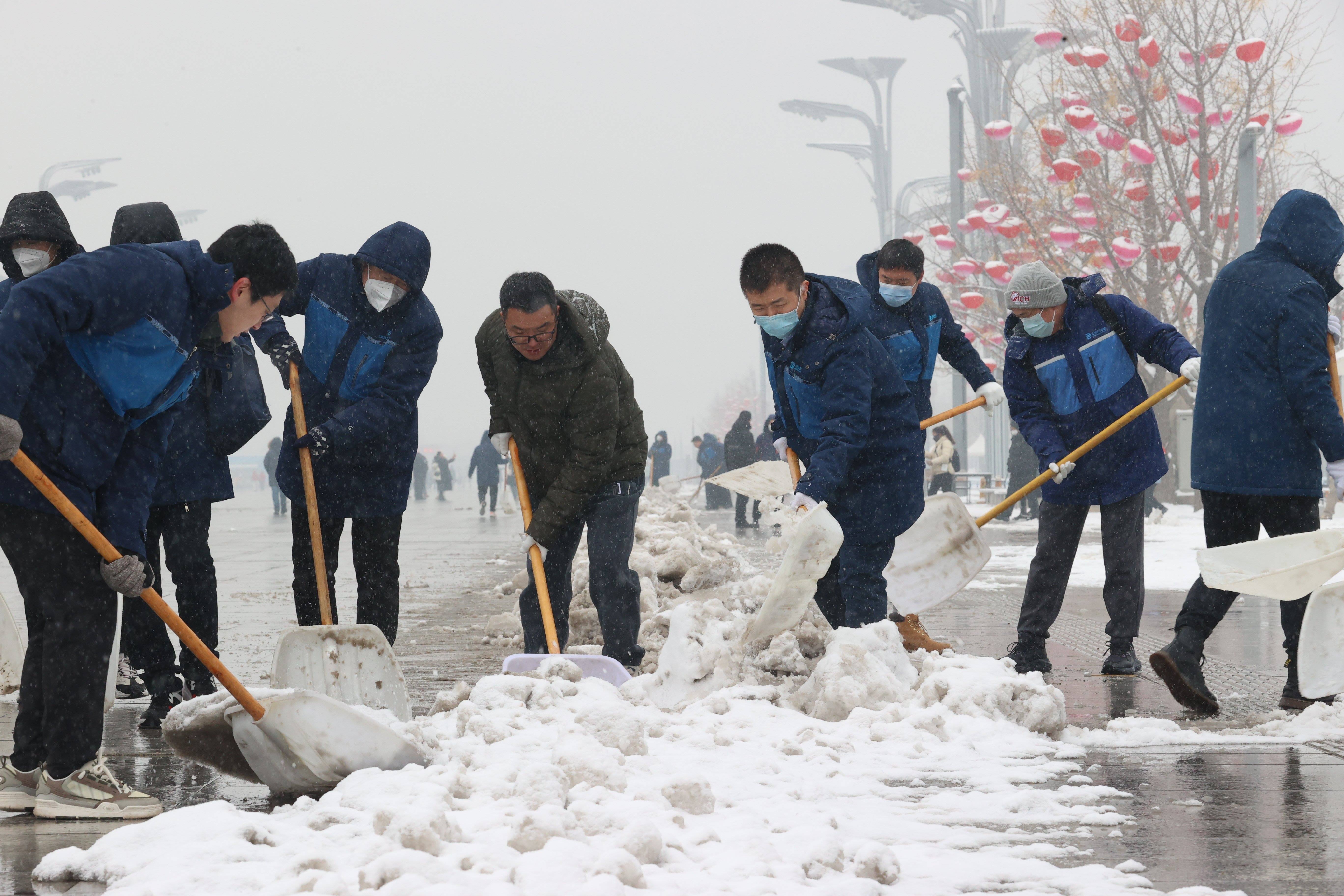 集团总部党员突击队、青年突击队在奥林匹克园区除雪(工人日报吴凡摄)