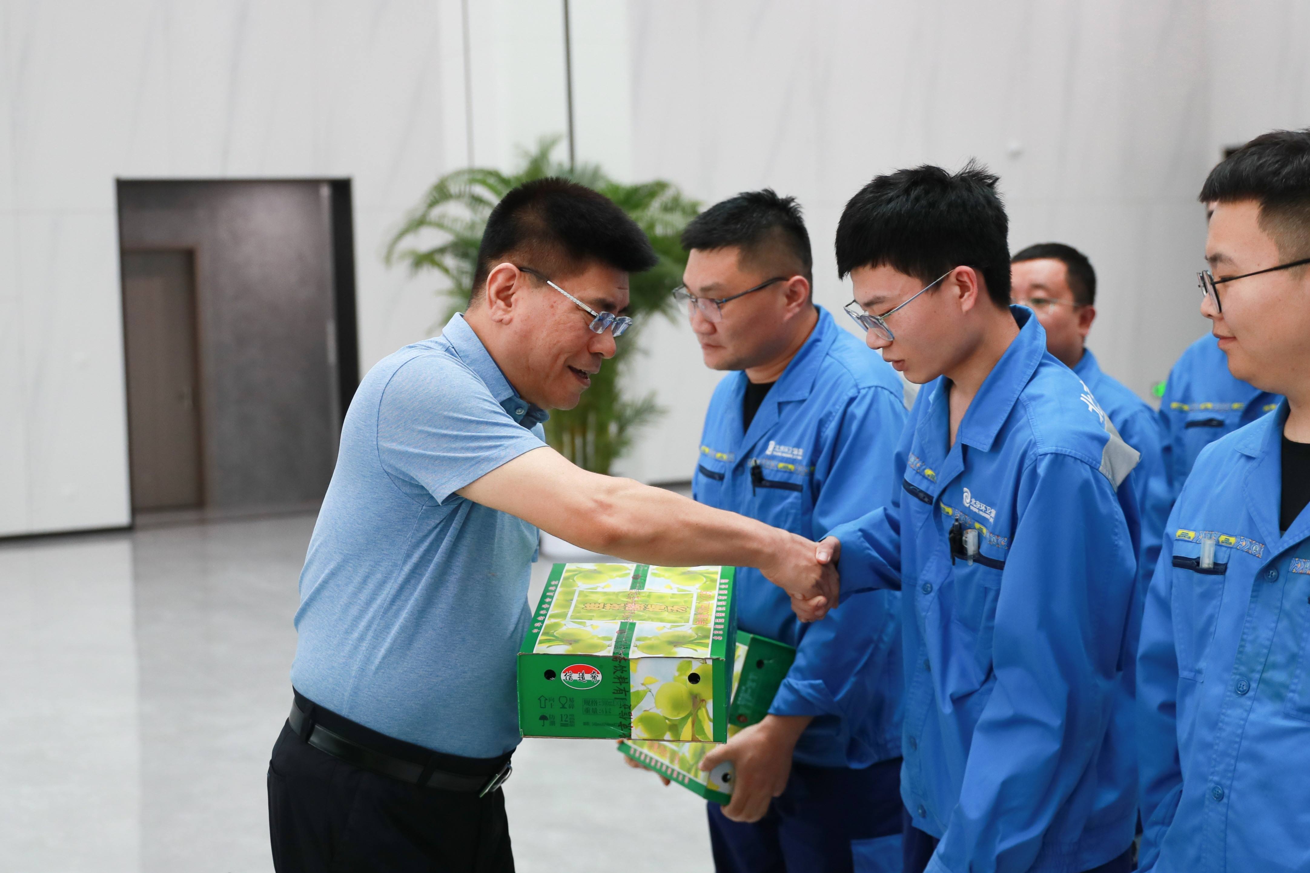 金善文同志向在夏日高温情况下坚守在岗位一线的广大环卫职工致以诚挚的问候。他表示,安定循环经济园区环境干净整洁,非常现代化。这座大型环卫设施的建设和投运离不开广大火狐人的辛勤付出,大家辛苦了。金善文同志向现场的环卫职工代表送上饮料、矿泉水等防暑降温物品,叮嘱大家提高自我防护意识,做好劳动保护工作。