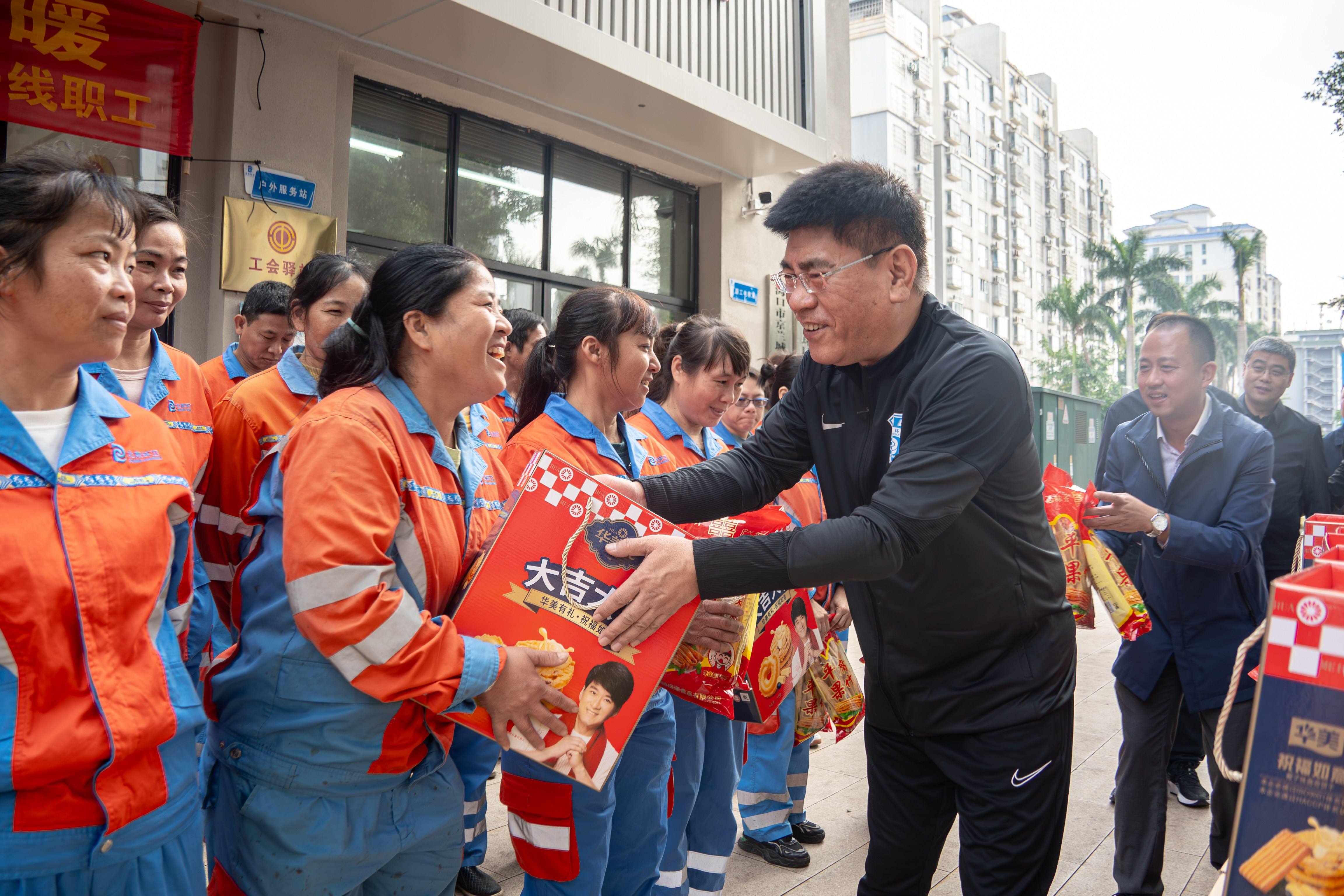 12月17日,高踪阳同志一行深入作业一线开展“心系一线 千里送暖”慰问活动,向长期奋战一线的环卫职工送上慰问品,对海南分公司广大干部职工的辛勤付出和坚守奉献表示衷心感谢,并提前送上节日祝福,叮嘱大家注意劳逸结合,让一线职工深切感受到“火狐”大家庭的温暖。