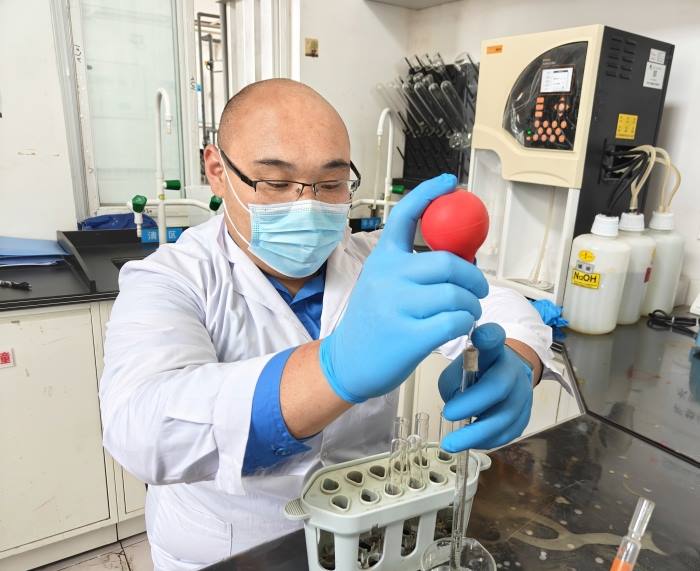 ▲许家珲认真监测水样