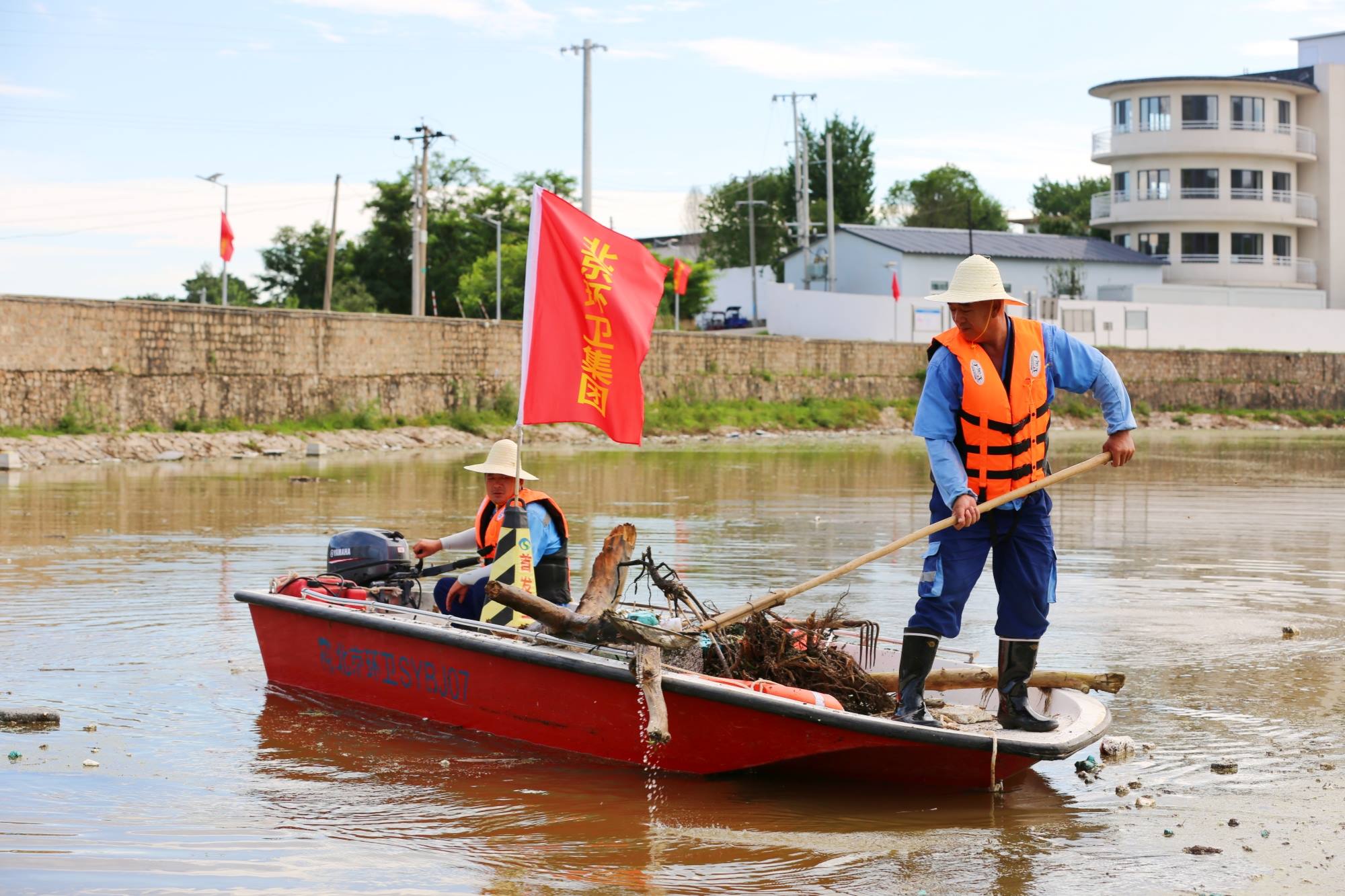 在不老屯镇的一些河道中,漂有倒伏的树干、树枝,影响河流畅通。河道岸边,堆积不少杂物。通州公司、环服公司调用挖掘机等大型机械,将杂物清运至岸边,最后由固废物流公司突击队员调配作业车辆,迅速进行清运。