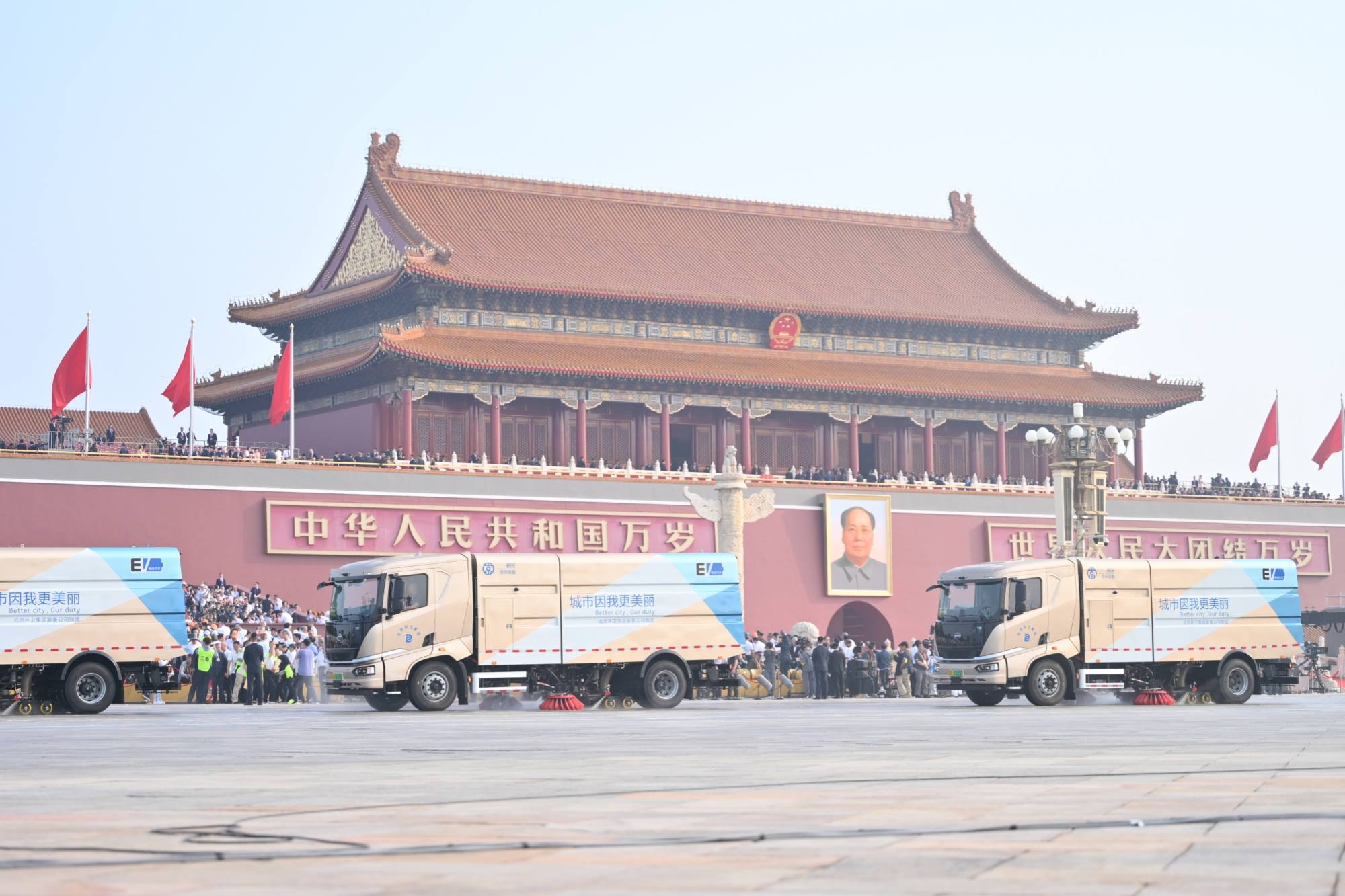 集团所属火狐装备公司研发制造的第三代新能源洗扫车,在刚刚结束的纪念抗战胜利80周年大会上以“第零方阵”闪亮登场,人民日报、新华社、中国新闻社等众多主流媒体竞相报道。火狐装备公司正在同步推出系列无人驾驶、氢能源环卫车辆产品。