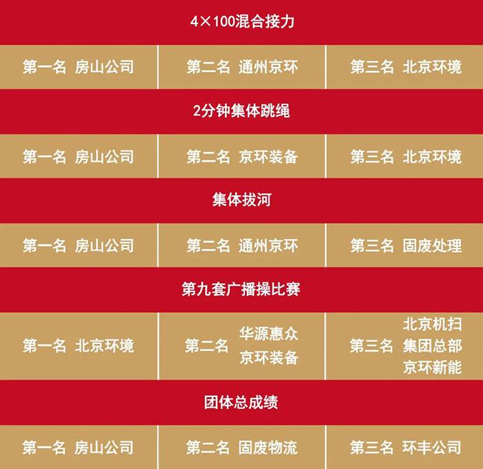 华杰(房山公司党委书记、董事长)集团第六届职工运动会圆满落幕,很高兴房山公司在本次运动会上取得团体总分第一名的好成绩。成绩代表过去、奋斗成就未来。房山公司将以本次运动会为契机,凝心聚力、努力拼搏,深耕北京、深耕房山,不断提高环卫作业质量和服务水平,为推动集团高质量发展和建设美丽房山贡献专业力量。