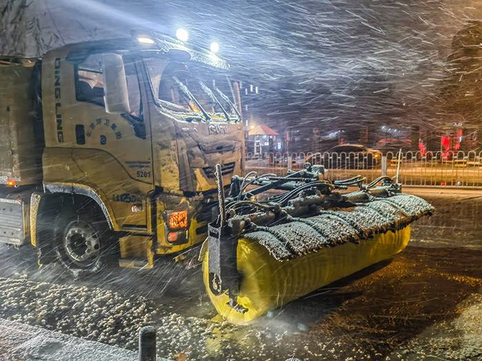 降雪开始后,集团所属各作业单位出动多功能机械除雪车对匝道、坡道等易结冰区域采取预洒融雪剂方式,防止结冰。同时通过机械和人工方式,在各作业路段连夜进行推雪、融雪,确保路面无积雪、无结冰,行人和车辆出行正常有序。