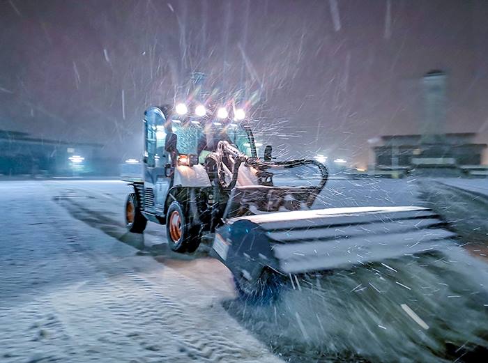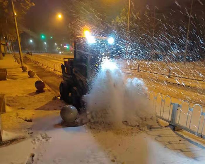 11月7日凌晨4时许,环服公司职工驾驶小型车辆清理积雪